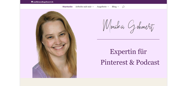 - Pinterest Starter Coaching (6 x 45 Minuten 1:1 Beratung per Zoom, bei jedem Termin besprechen wir ein Thema und du bekommst Aufgaben, die du bis zu unserem nächsten Treffen erledigst; mögliche Themen: Start auf Pinterest, Account Setup, Keywordrecherche und Pinterest SEO, Erstellen von Pingrafiken, Einrichten von Tailwind, Strategisches Pinnen, Pinterest und Tailwind Analytics, etc.)